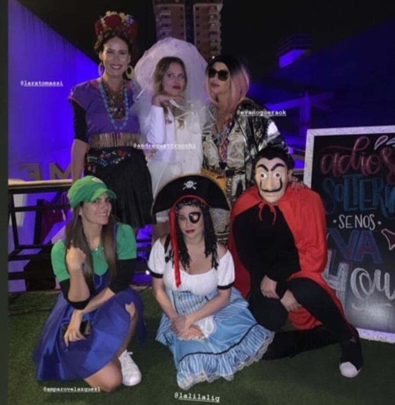 Amparo Velázquez, Carmiña Masi, Lali González, Lara Tomassi, Eva Noguera se juntaron ayer a la madrugada en una fiesta de disfraces donde no faltó el whisky para brindar por uno de los últimos fines de semana de soltera de Andrea.