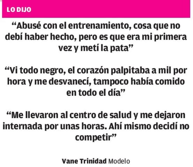 – Pasa que en la mañana del domingo, día de la competencia, abusé con el entrenamiento, cosa que no debí haber hecho, pero es que era mi primera vez en algo así y metí la pata. Al llegar a mi casa vi todo negro, el corazón palpitaba a mil por hora y me desvanecí, tampoco había comido en todo el día casi y eso también tuvo mucho que ver con lo que me pasó. Sufrí de arritmia y no paraba de temblar.