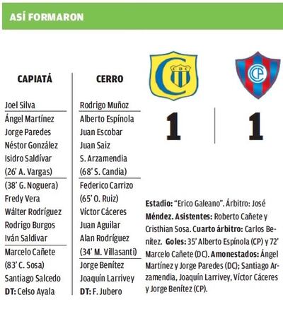 A los 35’, tras una serie de rebotes, el defensor Alberto Espínola aprovechó un mal despeje y marcó el tanto de apertura. Capiatá se sacudió, pero recién en la complementaria iba a tener su premio.