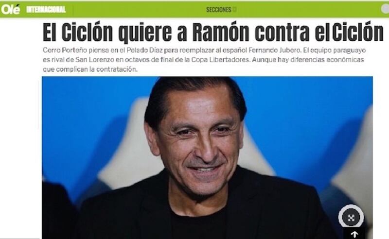 Medios argentinos se hicieron eco rápidamente de las chances del arribo de Díaz al Ciclón, sobre todo porque en la siguiente ronda de la Copa se las tendrá que ver con San Lorenzo, y de pasar esa fase, posiblemente con River Plate, si es que supera al Cruzeiro, ambos clubes dirigidos alguna vez por Ramón.