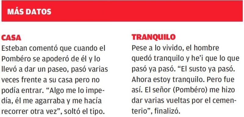 “Luego de terminar mi trabajo en un evento, a eso de las 4:00 de la madrugada, me dirigí a mi casa sobre mi moto, pero nunca llegaba, es como que alguien me daba vueltas como unas cuantas veces alrededor del cementerio”, contó Esteban, jurando que tuvo un encuentro con el mismísimo Karai Pyhare y que este le llevó a dar un “paseo” alrededor del camposanto que duró más o menos una hora.