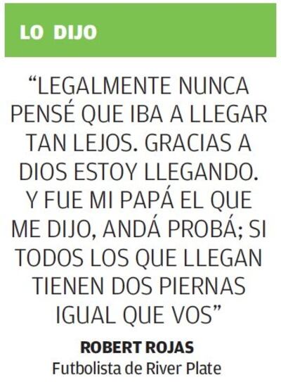 Robert Rojas brilló en Guaraní y de allí pasó a nada menos que River Plate de la Argentina, actual campeón de América, por una suma millonaria. El equipo de la banda roja le hizo un contrato por cinco años, con una cláusula de 25 millones de dólares.