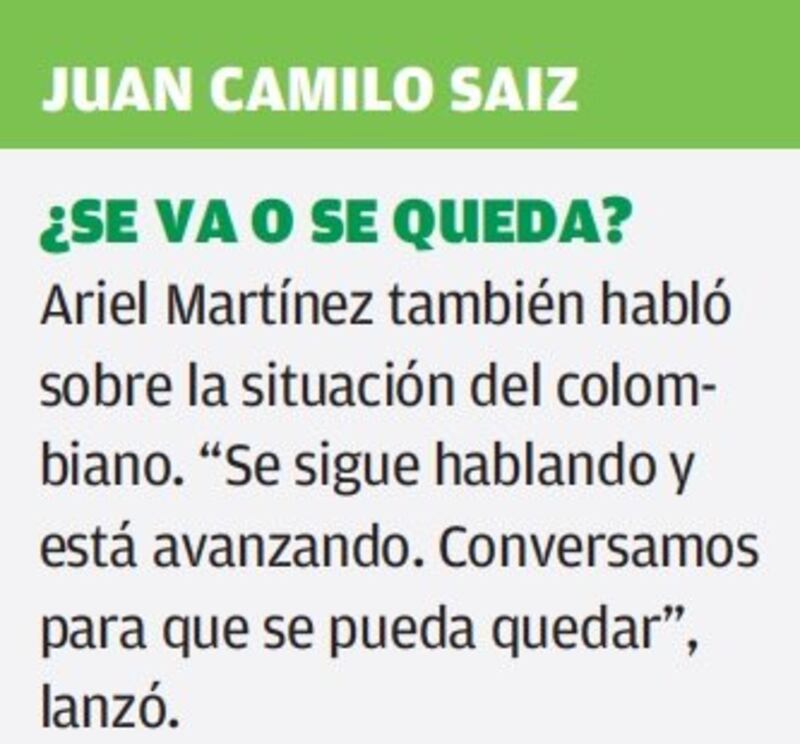 Sobre la llegada de Sergio Díaz, acotó: “Lo de Sergio está muy cerca, faltaría la autorización del dueño del pase y esperamos que esta semana esté con nosotros”.