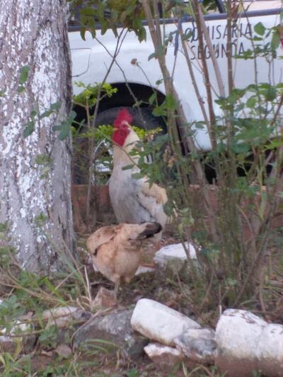 “Los vecinos vieron que el gallo andaba muy solo siempre, entonces se encargaron de buscarle una pareja, un día llegaron si que ya con una gallina, que ahora es ya pareja”, he’i el comisario. La pareja más juky de la sede policial se pasea ápe ha pépe por los alrededores, y son todo un show voi para los pobladores.