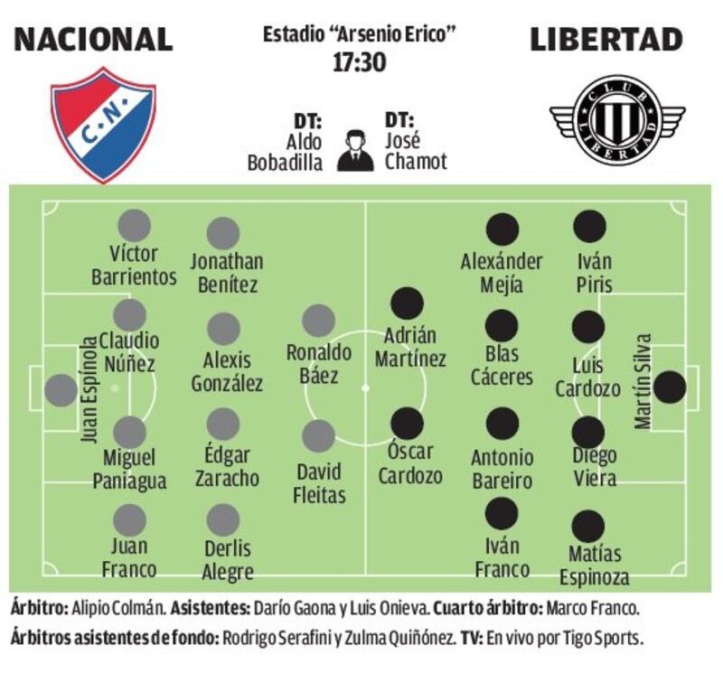 Desde las 17:30, en el estadio “Arsenio Erico”, Nacional recibirá al líder del campeonato, Libertad, en un encuentro de alto voltaje. Ambos llegan muy bien porque vienen de ganar. La Academia vacunó a River Plate la fecha pasada y el Guma le sacó el invicto de 25 partidos sin perder al Olimpia de Daniel Garnero.