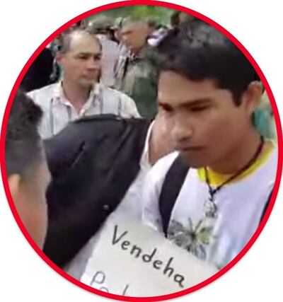 Petta también pidió que se le devuelva al estudiante los carteles que estaba mostrando. Otro guardia alcanzó a la mujer y le trajo otra vez las cartulinas todas destrozadas al estudiante.