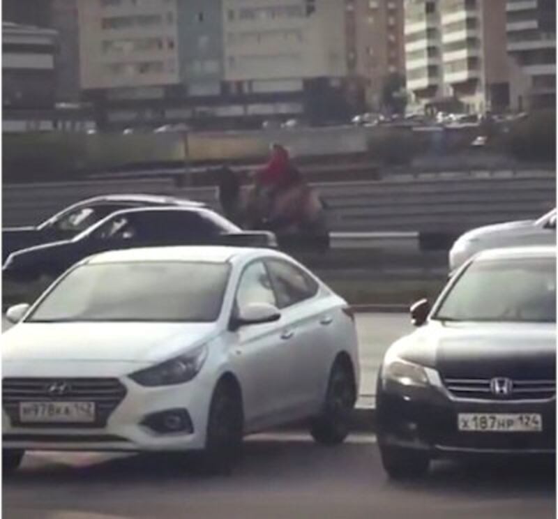 RUSIA. Una mujer ya cansada del embotellamiento mañanero en la ciudad de Novosibirsk, no encontró la mejor manera que subirse a un camello para llegar más temprano a su laburo. No anda con joda, sube a su “cuatro patas” y pasa entre autos y en parte hasta por la vereda para dirigirse tranquilamente.