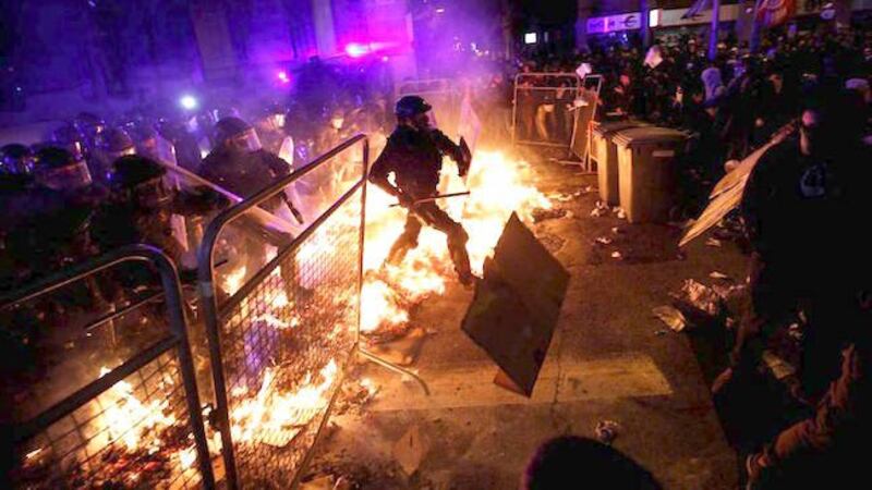 ESPAÑA. La tercera jornada consecutiva de disturbios de la región de Cataluña, durante las protestas contra la sentencia de prisión a nueve líderes soberanistas del 2017.