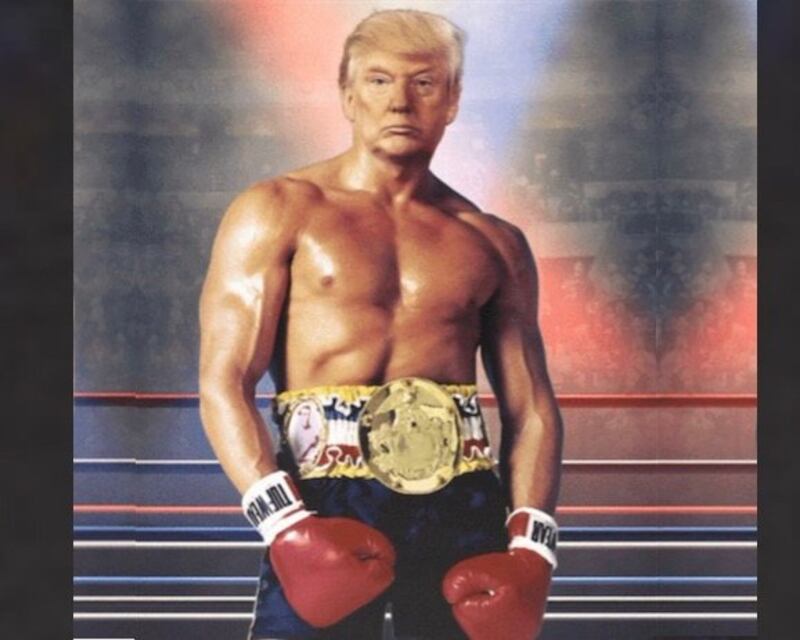 El presi Donald Trump homenajeó a Rocky Balboa a través de un fotomontaje en Twitter. La imagen se viralizó y consiguió miles de Me Gusta. Él quiso parecerse a Silvester Stallone en una de sus míticas películas.