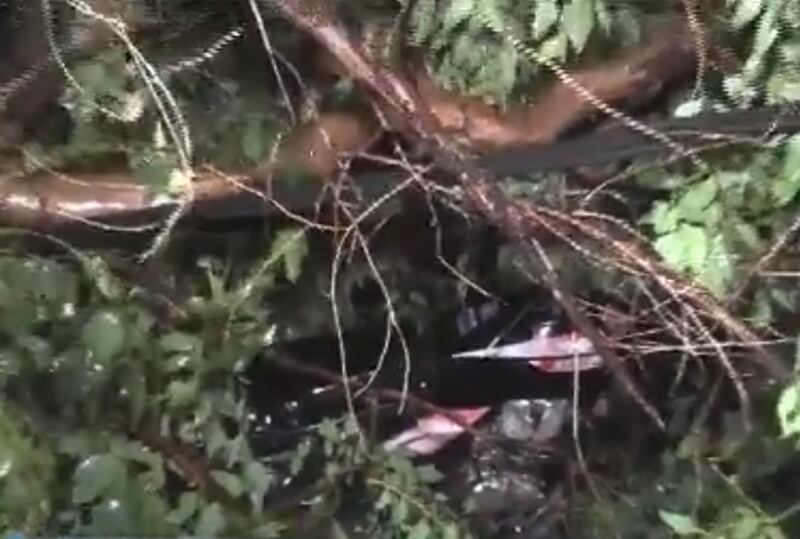 El mismo árbol que mató al joven también cayó sobre un auto que estaba estacionado en esta esquina, un Chevrolet modelo Agile, con chapa UAC 189. El árbol cayó sobre la parte del motor y aplastó totalmente el capó. Felizmente no hubo víctimas en este vehículo.