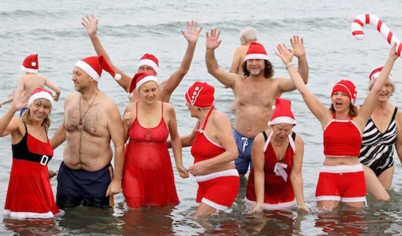 La tradición en Alemania, disfrazarse y meterse al mar que está bien helado. Muchos lo hicieron, mientras otros miraban nomás.