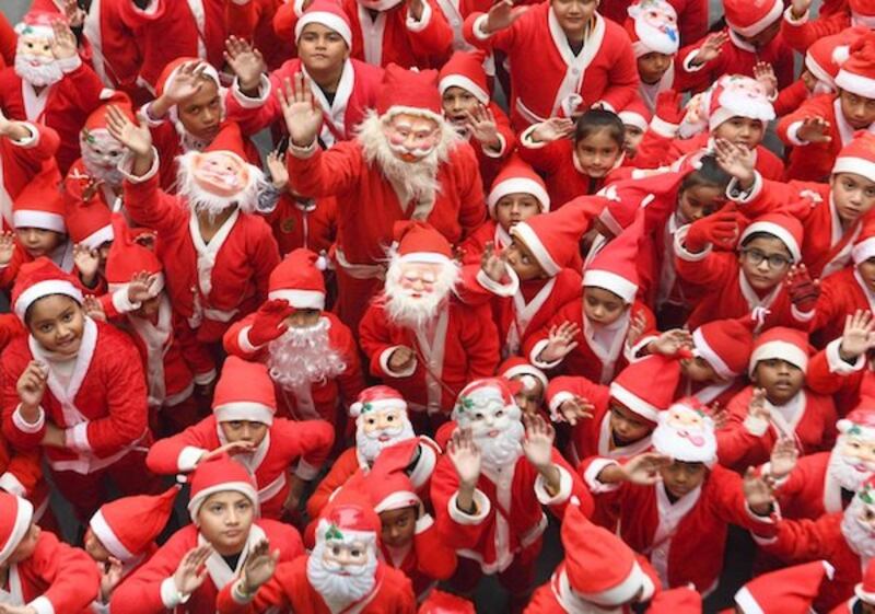 Una gran cantidad de niños finlandeses que se disfrazaron de Papá Noel para recibir la Navidad.