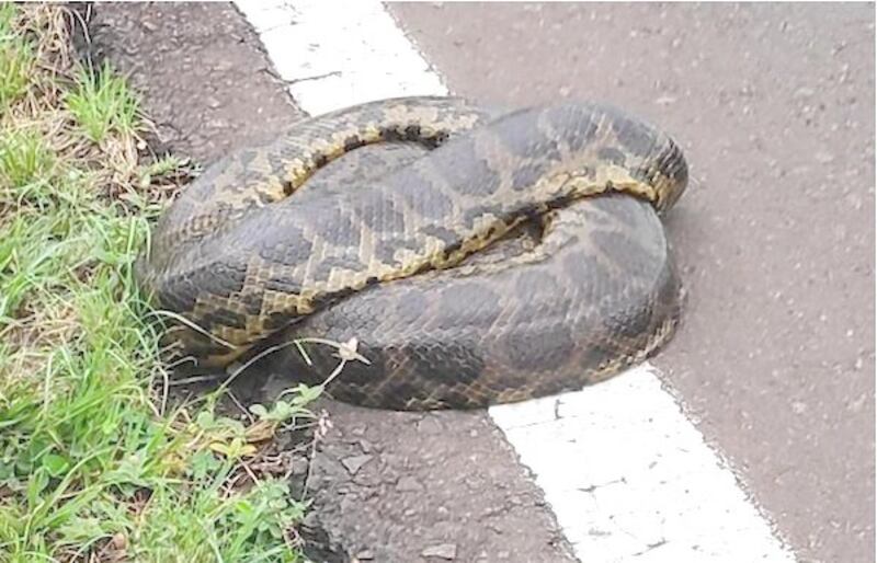 ARGENTINA. Susto y no macana se llevó una familia de Corrientes, cuando detectó una víbora de la especie curiyú o anaconda amarilla de gran tamaño sobre la ruta. Con extremo cuidado, utilizando un remo, la rescataron del peligro de los vehículos que circulaban a esa hora y la devolvieron a su hábitat y pudieron respirar.