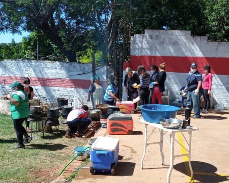 Es la única manera de sobrellevar esta dura prueba de vida que estamos viviendo, no solo en el país sino en el mundo entero voi. La comida fue preparada en la plaza central de Curuguaty, en donde hasta el gobernador, César “Tigre” Ramírez, se remangó la camisa ha oñecociná avei. Los ingredientes fueron donados íntegramente para la ayuda a los prójimos.