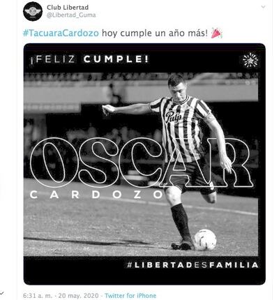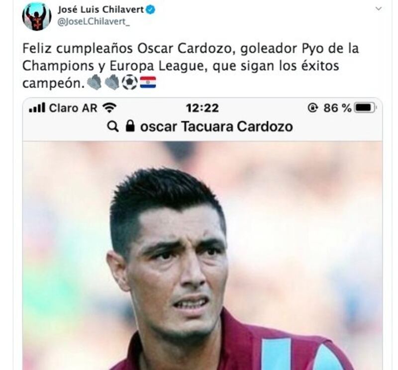 Pero las fel icitaciones para el delantero no pararon ahí. Newell’s Old Boys de Rosario también a través de sus redes sociales lo recordó con este mensaje y un video de sus goles. “#UnDíaComoHoy, pero de 1983 nacía en Paraguay el delantero Óscar Cardozo. Convirtió 21 goles en 33 partidos con la Rojinegra, entre 2006 y 2007. ¡Feliz cumpleaños Tacuara!”.