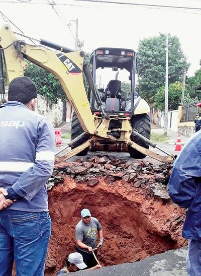 Explicaron avei que el desagüe pertenece a la Empresa de Servicios Sanitarios del Paraguay (Essap) y que su Dirección de Vialidad está apoyando a full las obras para que la calle pueda ser jey transitada con toda normalidad y seguridad.
