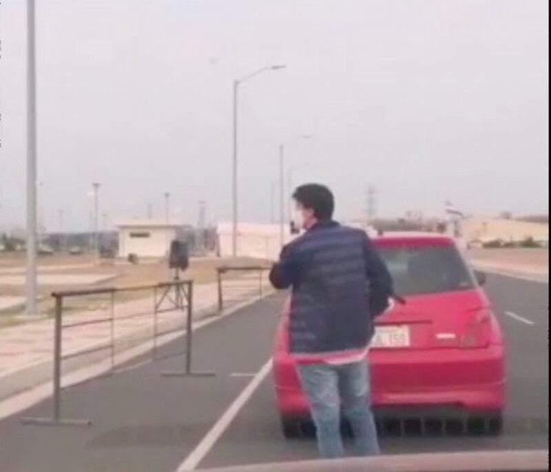 El joven avanzaba entre la fila de vehículos con la esperanza de poder realizarse el test, pero un policía le vicheó y le advirtió que debe acudir a los puestos sí o sí en vehículo.