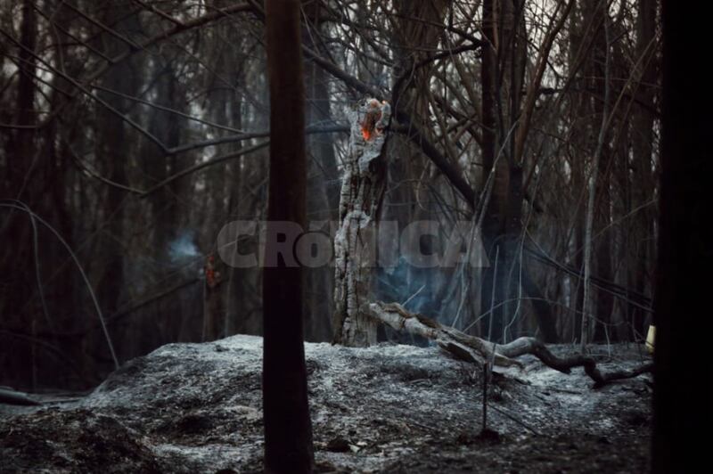 Los primeros que tuvieron que salir a batallar con lo que había fueron los guardaparques del Monumento Cerro Kõi y Chorori. De hecho, el fuego ¡hasta cruzó la ruta como si nada!, y quemó una humilde vivienda de la zona y dejó su huella en lo que era una pizzería. Luego siguió avanzando y llegó hasta otras propiedades.