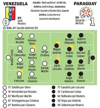 En el segundo tiempo, un gol anulado a los venezolanos nos dio una nueva vida y para qué pio luego, a los 84 minutos de juego, cuando más estaba siendo criticado, apareció Gastón Giménez para anotar un lindo tanto, tras pase del “Beto Iniesta” Espínola.