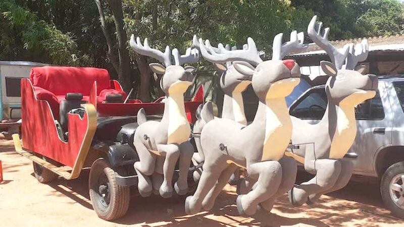 “Teníamos un Jeep modelo 86. Le colocamos las maderas para la forma del trineo, compramos hierro. Le colocamos purpurinas y hasta luces led para todos los niños se queden sorprendidos”, detalló. En cuanto a los renos, Manu contó que no tuvieron otra opción que mandar hacer con un capo que hace arte con isopor y que también vive en Lambaré.