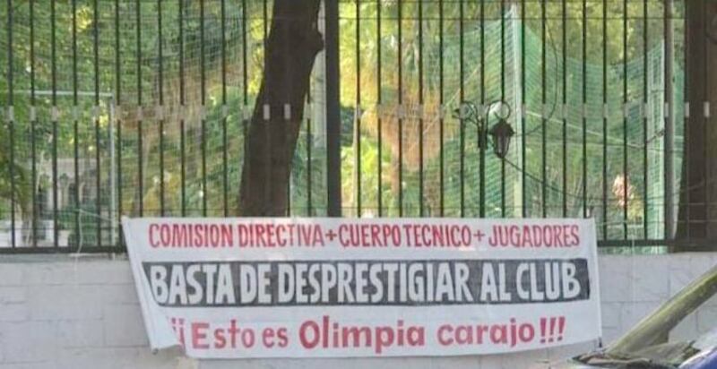 Ayer un grupo de hinchas dejó un pasacalles por la reja del club sobre la Avda. Mariscal López, llevaba la siguiente frase: “Comisión directiva, cuerpo técnico y jugadores. Basta de desprestigiar al club. ¡Esto es Olimpia, carajo!”. Hendy.