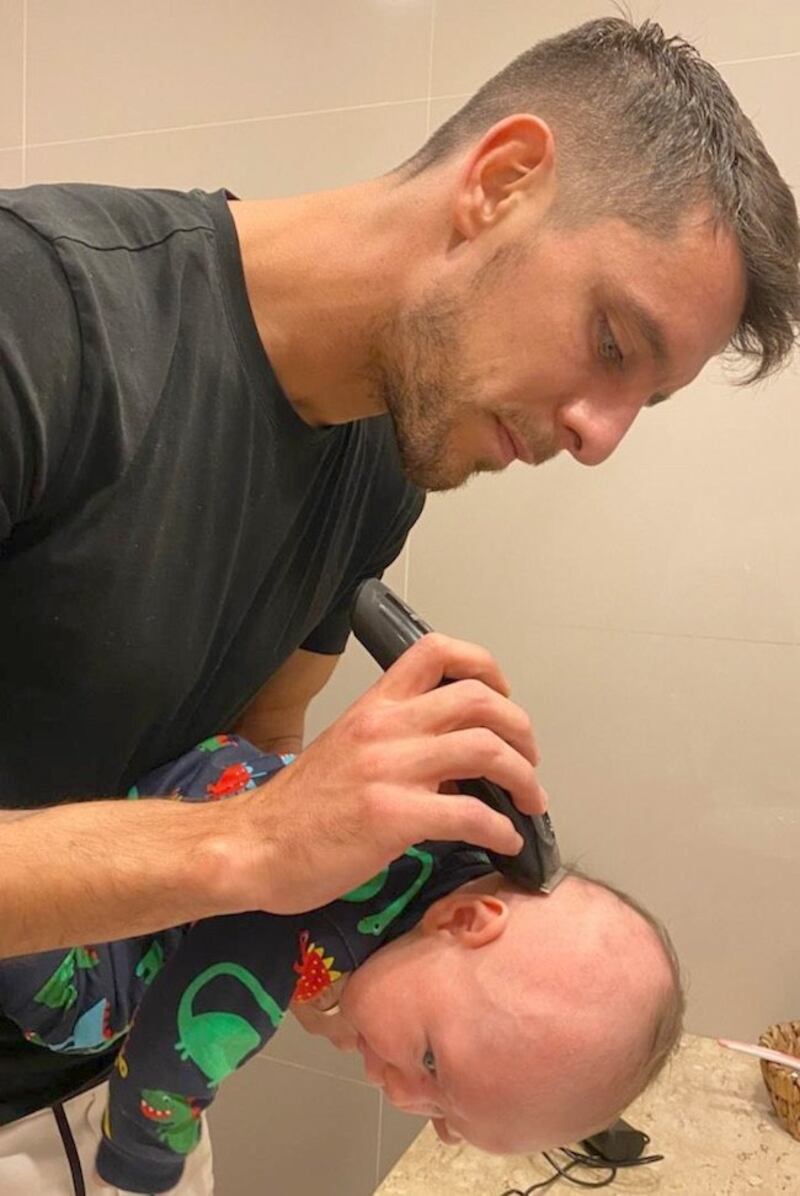 Ale Silva se convirtió en peluquero. El pelotero de Olimpia se encargó de darle el primer corte de cabello a su hijo Juan Franco.