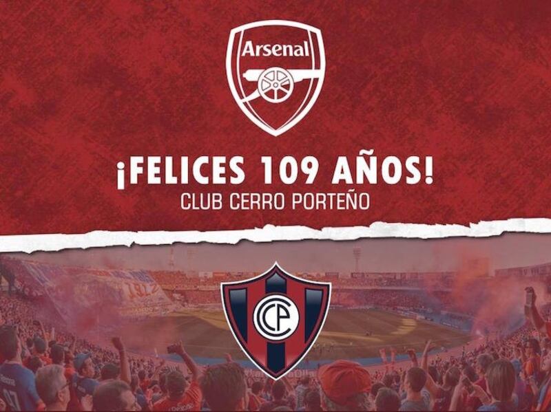 “¡Feliz aniversario, Cerro Porteño!”, fue la breve mención de los gunners de Inglaterra. La fanpage (español) saluda casi siempre, ya que está en constante interactuación con el fútbol paraguayo.