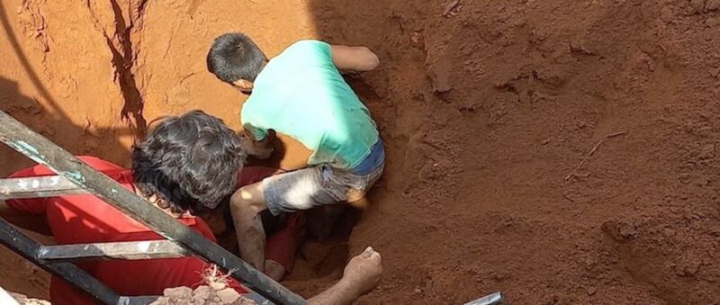 Un grupo, integrante de una misma familia, realizaba una excavación en el fondo de una casa, supuestamente para lo que sería un pozo ciego. Pero ante el aparente desconocimiento sobre el trabajo, la tierra les hizo una mala pasada que no olvidarán jamás.