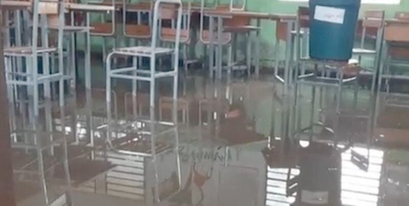 Uno de los pabellones de la sede educativa se inundó completamente. Pero, pese a ello, los estudiantes acuden con ganas de estudiar. “Aquí son cientos los alumnos afectados. No puede ser que no se solucione esta situación. Cada vez que llueve se inundan las salas de clases. Esto literalmente es dar clases bajo agua, es lamentable y muy penoso”, dijo el padre muy molesto.