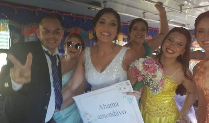 Pero la novia no viajaba en un “Merchu” cualquiera... Es que no era un automóvil o camioneta, y mucho menos una limusina. ¡Iba en un colectivo! Sí, la mujer rompió tradiciones y protocolos matrimoniales y llegó hasta la capilla donde tenía que casarse a bordo de un bus.