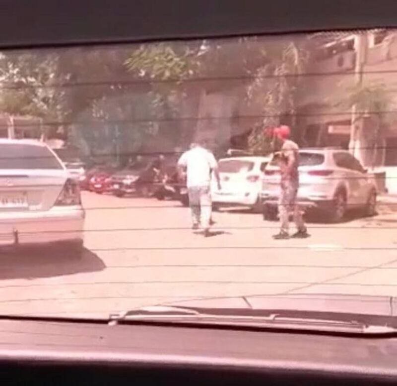 Una persona que se encontraba en el interior de un automóvil logró filmar la riña entre el funcionario y un supuesto cuidacoches, quien en un momento dado sacó un arma blanca de su cintura.