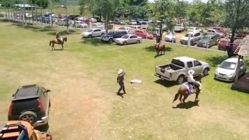 En medio de las idas y vueltas, un toro que dejó en claro que el horno no estaba para bollos con el calor que hacía, se dio la vuelta y se escapó. En lugar de salir al ruedo, se metió hacia la gradería, desde donde logró ganar campo abierto hacia el estacionamiento.