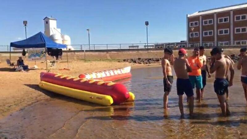 "Estamos ofreciendo los paseos en banana igual que el gomon también, y el paseo en moto en jetsky. La banana cuesta 30 mil, el gomon 35 y el paseo en moto 50 mil guaraníes. Tenemos todo el equipo de seguridad. La verdad que estamos contentos porque hay mucha gente. Los viernes, sábados y domingos aumentan" dijo uno de los encargados del local.