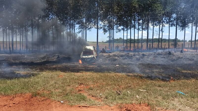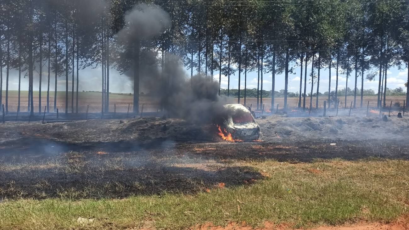 Inmediatamente se llamó a los bomberos voluntarios de Liberacion y Guayaibi, donde acudieron para sofocar el incendio pero ni ahí pudiendo hacer nada por el vehículo, mucho menos por el área verde que quedó muy afectada.