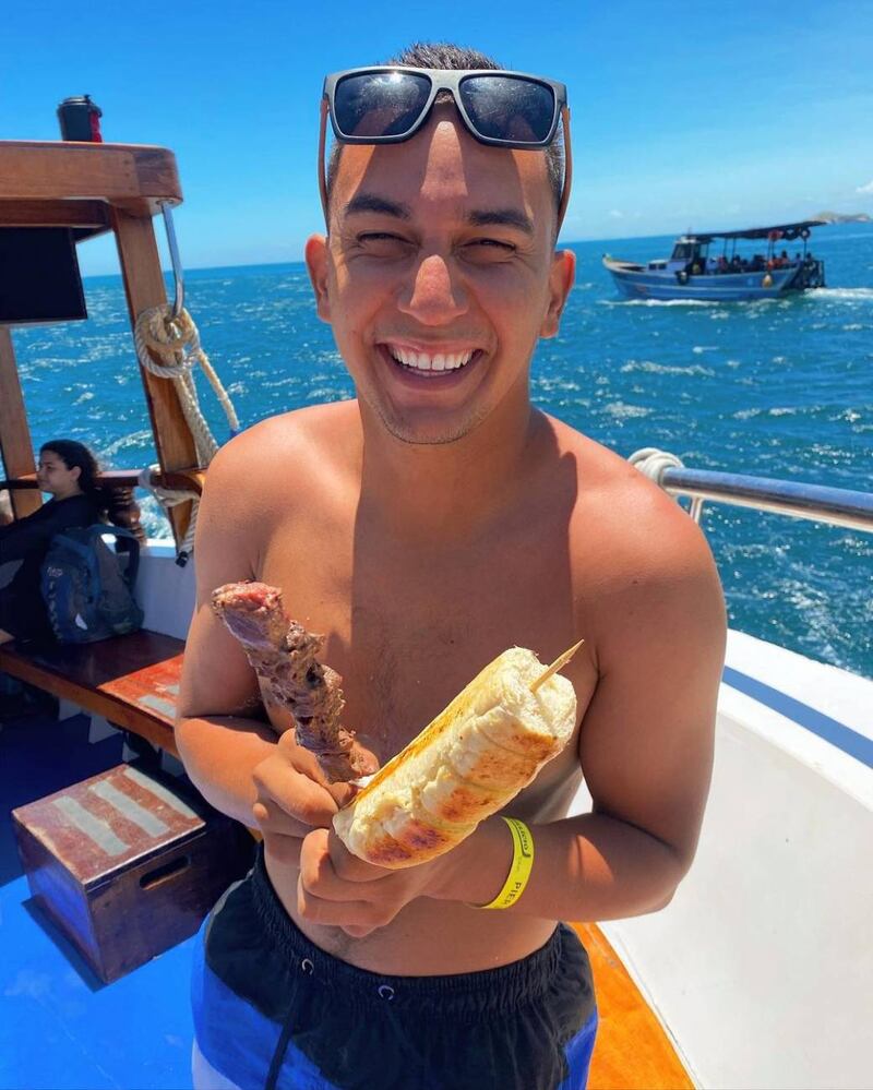 Mariano contó que ahorró cinco milloncitos y que ese es su presupuesto para este viaje. Pero por si se le termine el efe lleva tarjeta.