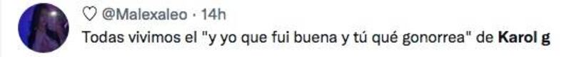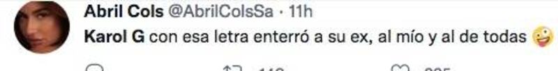"De lo tóxico que eres, se volvió perjudicial, lo que se va, se va. Conmigo no te equivoques", dice parte del coro, que en todo momento cañea al ex y le dice todo lo peor que puede. Incluso utiliza una frase de una canción de Paquita la del Barrio, "Rata de dos patas, lo dijo Paquita, un animal rastrero, que se come todo lo que se atraviesa" dice la música de "La Bichota" que tres días es TT y tiene mas de 10 millones de visualizaciones en youtube.