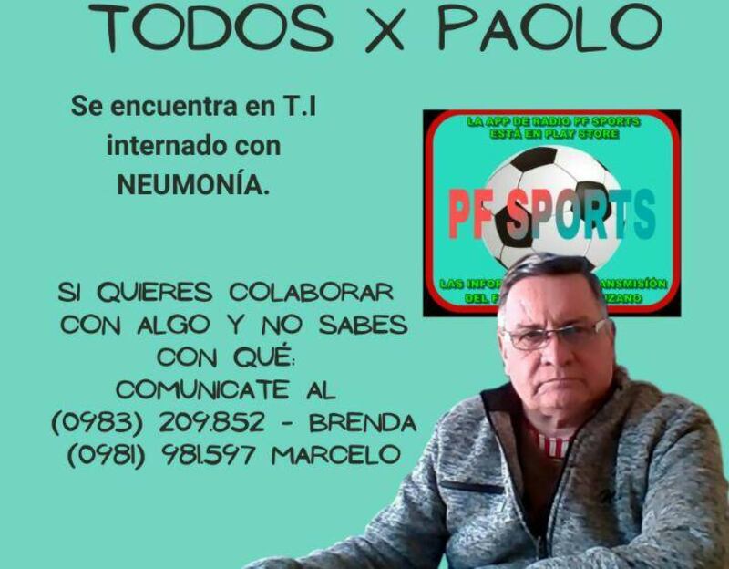 Está actualmente con Covid y neumonía. Sus familiares dijeron que el locutor no está vacunado lo que empeoro su situación. Los gastos de internación superan varios millones es por eso que se inició la campaña llamada “Todos por Paolo”, que busca ayudar al animador con lo que fuera posible en dinero.
