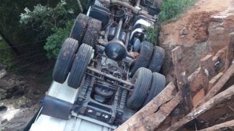 El accidente ocurrió en horas de la tarde de ayer, domingo, en donde un camión Scania, tipo tumba, el cual llevaba un gran peso, intentó cruzar un viejo puente de madera, pero la estructura tujaku'e no aguanto el peso y shiplé cayó el feroz camón al cause hídrico.