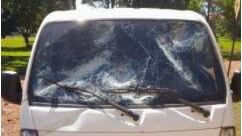 colonia. El mismo estaba al mando de una camioneta de la marca Kia modelo K2700/2020, color blanco, rodado que sufrió la rotura total del parabrisas, como el chofer que tambien fue herido en uno de los brazos con los restos de vidrios que ocasionaron las piedras que fueron a frenar por el vehículo.