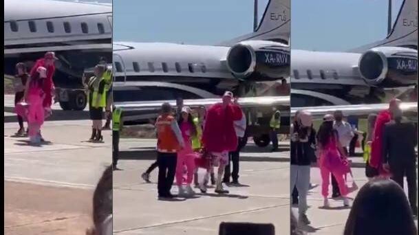 La mujer considerada como la más sexy del mundo bajó del avión vistiendo ropa deportiva en color rosado chicle. Su novio tenía casi la misma vestimenta. Tanto Megan Fox como su chuli artista estaban siendo esperados por un grupo de fans en el aeropuerto.
