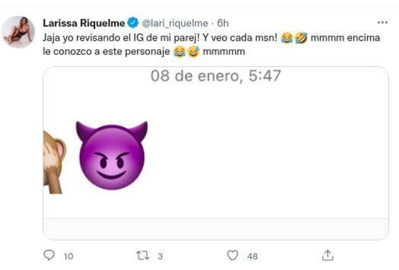 Larissa tiene la contraseña del acceso a la cuenta del Instagram. Con autorización de Fabbro, ella se había quedado con esa cuenta y tenía, inclusive, la autorización para poder alquilar a terceros para que le saquen provecho. "Jaja yo revisando el IG de mi pareja! ¡Y veo cada msn! Mmmm encima le conozco a este personaje mmmmm", dijo Lari.