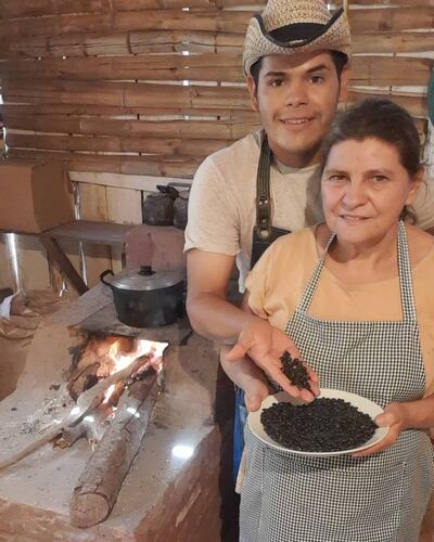 “Así va quedando de a poco nuestra cocina angiru. Ya está para lavar nuestros cubiertos. Beguekatu jaha hese hina” escribió en sus redes mostrando de cómo preparaba las tacuaras para usarlas.
