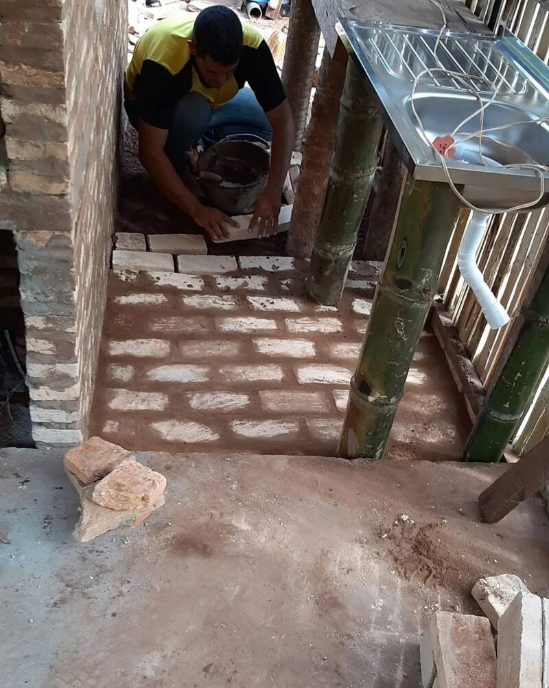 Cada día va mostrando el avance de su construcción. “Ya está nuestro piso y también nuestra mesada de madera y usé karanda'y que había dejado tirado por ahí la gente de la ANDE. Jaipurupaite hina ko'ã mba'e oñemombo vaekue” siguió contando el joven influencer que tiene mas de 400 mil seguidores en Facebook, además de Instagram y montón de reproducciones de sus videos en youtube.