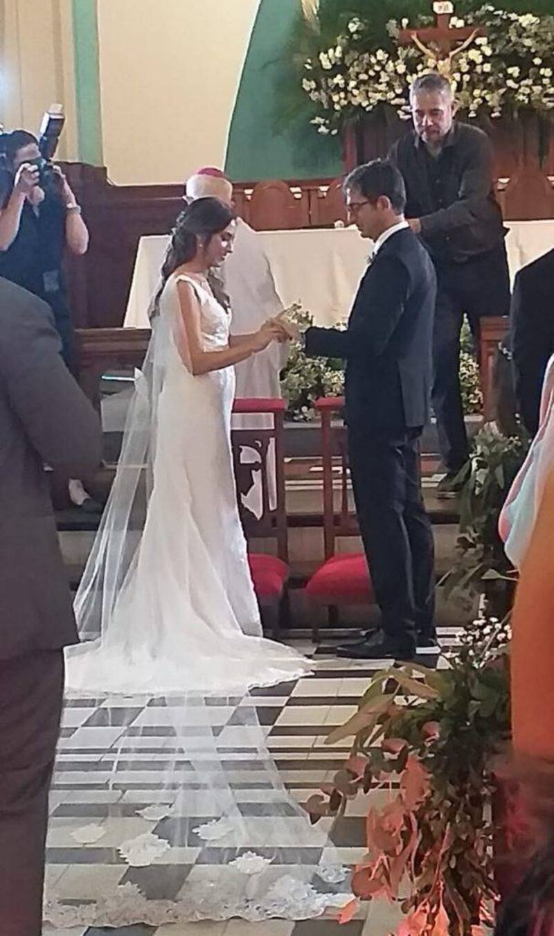 El cortejo nupcial estuvo integrado por sobrinos de la periodista de Unicanal y toda la ceremonia religiosa estuvo fuertemente custodiada por policías vestidos de civil.