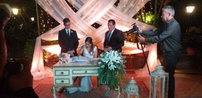 Luego de la ceremonia religiosa se hizo la boda civil ya en el hotel del Paraguay donde avei se organizó la festichola.