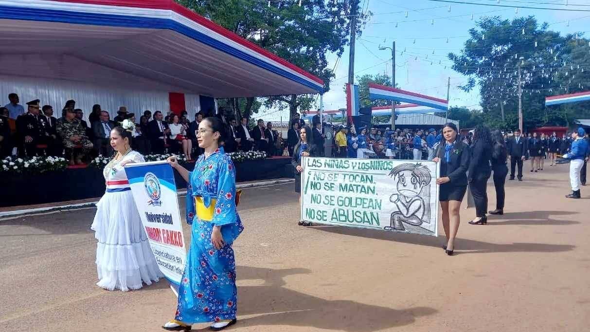 Allí estuvieron presente las chiroleras, banda lisa del colegio Nihon Gakko sede Asunción, así como la Universidad Nihon Gakko sede La Colmena.