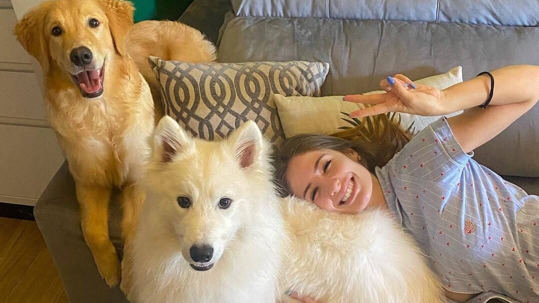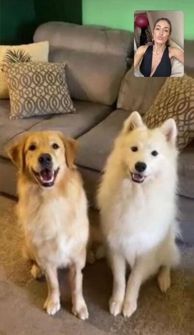 La modelo compartió cómo se conecta con sus mascotas desde la distancia. Lo hace a través de videollamadas y lo simpático es que los dos se ponen a mirarle atentamente, mueven la cabeza de un costado a otro como señal de que le están escuchando. Sus dos perrhijos son su vida, estando acá ella son inseparables, por lo que ahora que viajó casi a diario se comunica con ellos por videollamadas.