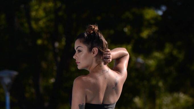 Nos contó que los tatuajes que no le gustaban más y que de ahora en más ya no quedarán en su cuerpo son un tribal en la pierna; una mariposa en la cola, y una sirena en la espalda. Dijo que ni tenían significados, que simplemente se mandó hacer de joven. Hay varios otros que seguirán, como un ojo en el brazo que comparte con su novio, Jony Fabbro.