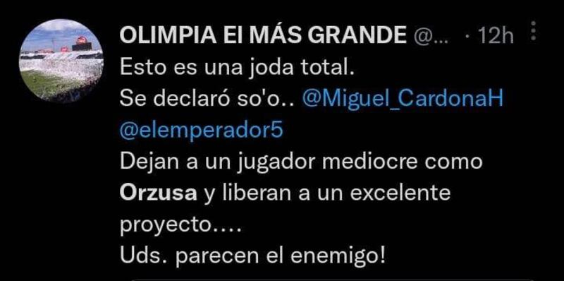 Pues los fanáticos justifican que no pueden dejar ir a una promesa del club y que sigan en el plantel jugadores como Edgardo Orzusa y William Candia, quienes hasta ahora no convencieron con su rendimiento.