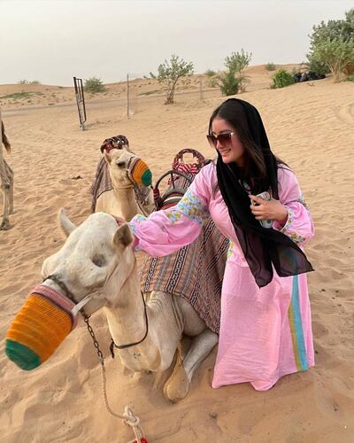 Tampoco podía faltar una serie de fotos increíbles desde la mezquita Sheikh Zayed, en donde tuvo que lucir una abaya, una túnica larga hasta los pies que se usa sobre la vestimenta en los países árabes y en el norte de África. Igualmente, se la vio montando a camello en medio del desierto árabe, entre muchas otras actividades. ¡Una cosa de ensueño!